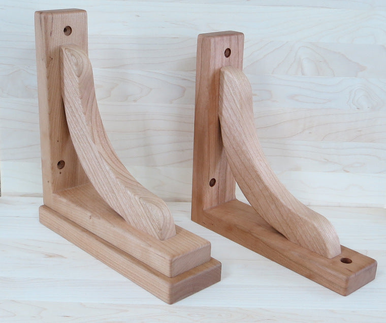 We use only the finest solid maple, solid cherry, solid oak and solid poplar for our corbels. Our corbels are meticulously sanded and all edges have been neatly rounded over. They are ready for you to stain or paint. See ourĀ Finishing Tips.